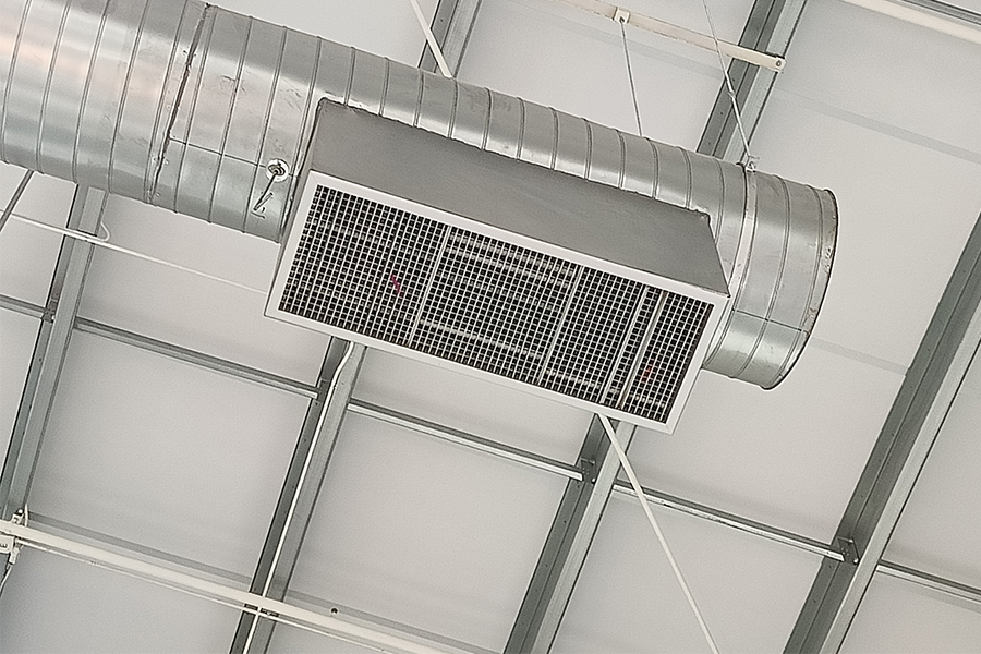 - 天井や床、壁から送風される吹出口だけが見えることが多い。