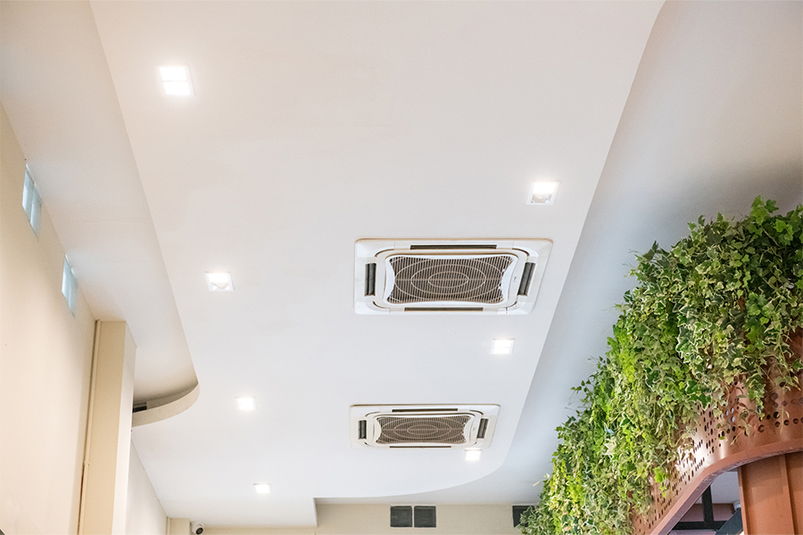 全館空調(業務用)のエアコンは、高出力で広い空間を一括管理できる便利さがある反面、内部が天井裏などに隠れているため汚れが蓄積しやすいのが特徴です。