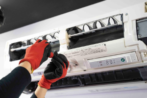 作業前にエアコンの運転確認を行い、問題がないことを確認します。