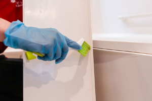 人や環境に優しく洗剤の臭い残りがないエコ洗剤を使い、カビや汚れを根っこから浮かせて落としやすくします。