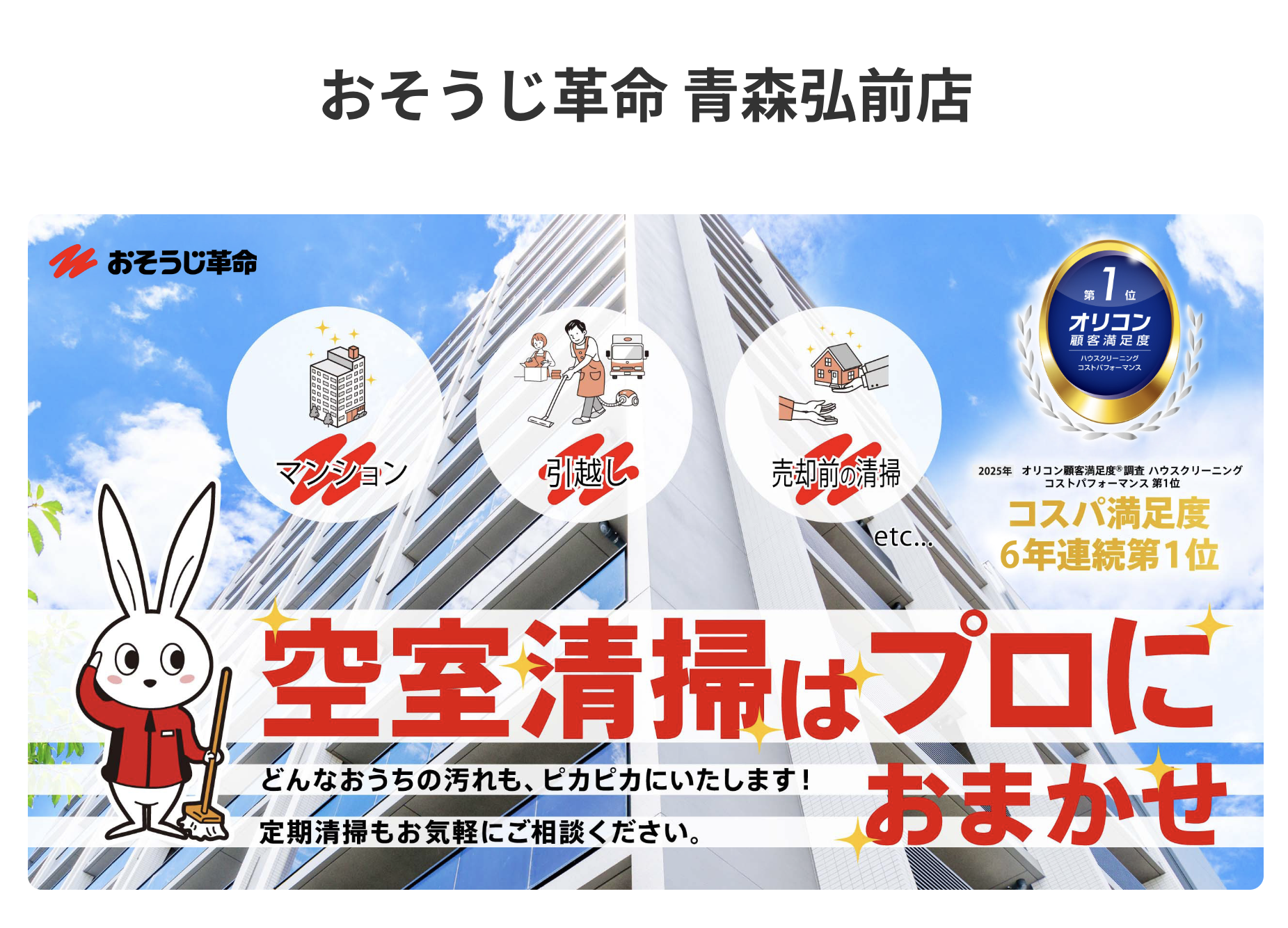 おそうじ革命青森弘前店の榊 郁弥(さかき ふみや)と申します!