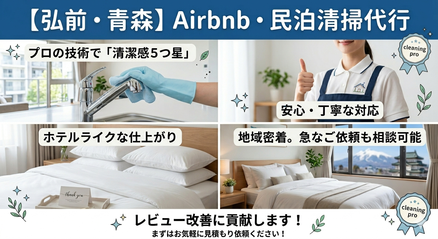 【エアビー/民泊のオーナー様向け】青森 弘前の Airbnb 民泊の清掃もおまかせください!