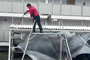 - ご安心ください。住人・来訪者への声かけや通行配慮、作業音や洗剤臭への配慮も徹底しています。