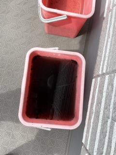 本体は洗剤をかけて高圧洗浄機で洗うとカビを含んだ汚れが真っ黒な水になって出てきました。