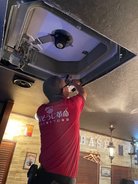 当店の作業は一般家庭のエアコンクリーニングや水回り清掃などのいわゆるハウスクリーニングが多いのですが今回はお店のオーナーさんからのご依頼で天井埋め込...