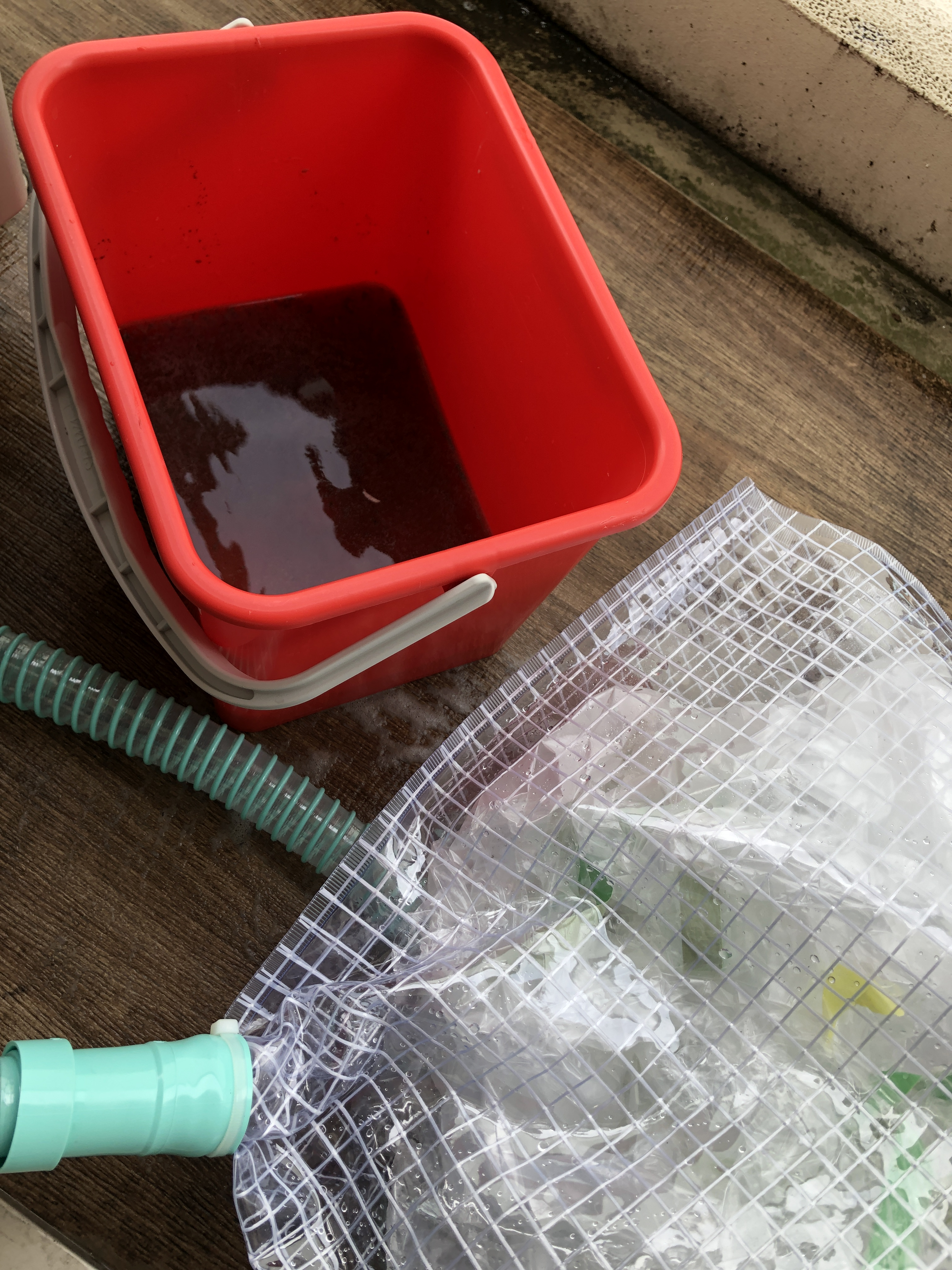 案の定、カビがドバドバ流れ落ち、真っ黒な水の出来上がり!