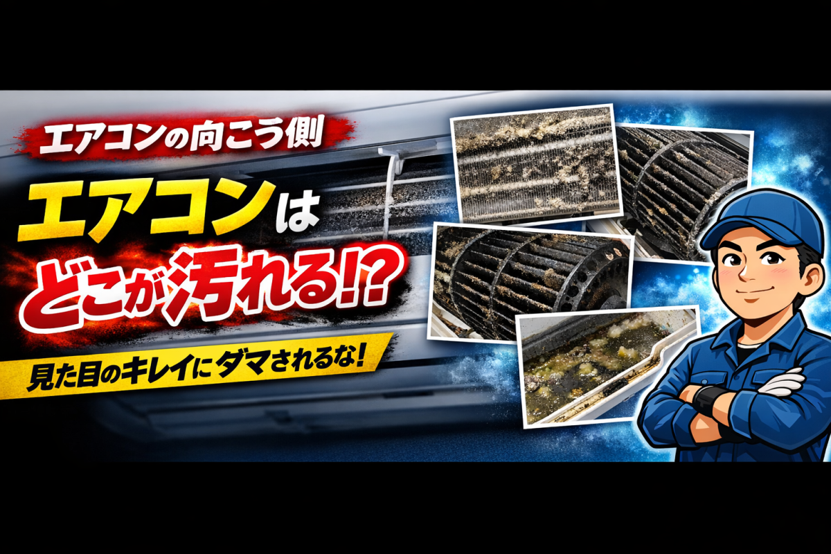 「エアコンのどこが汚れるのか?」をお伝えします。
