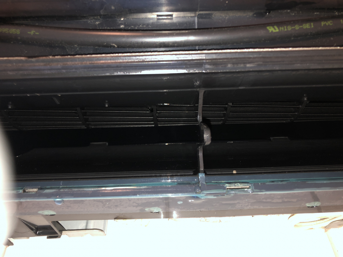 ◉ビフォー:エアコン内部の汚れ エアコンの吹き出し口にびっしりとホコリとカビが…。