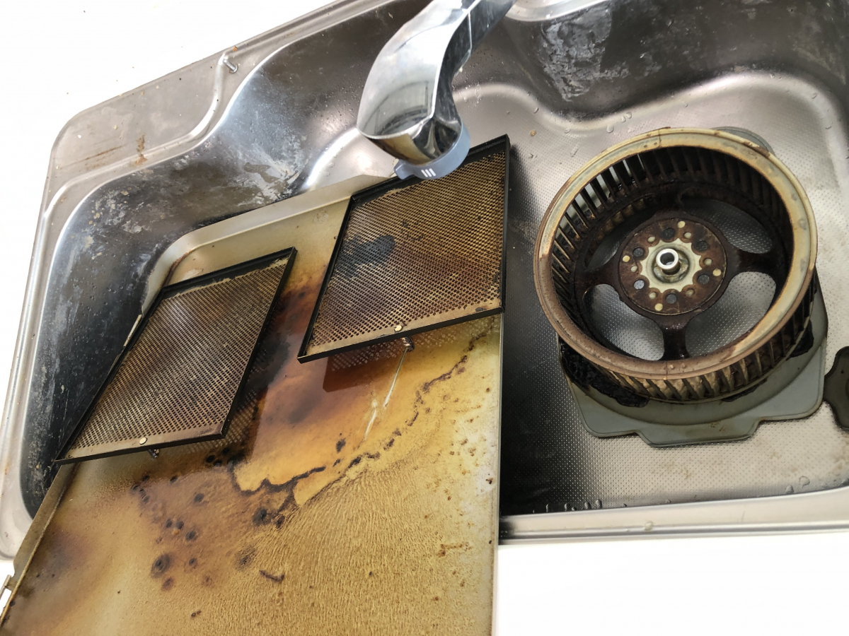 油汚れが蓄積したレンジフード 一見キレイに見えても、
