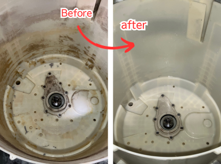 市販の洗濯槽クリーナーでは届かない部分。