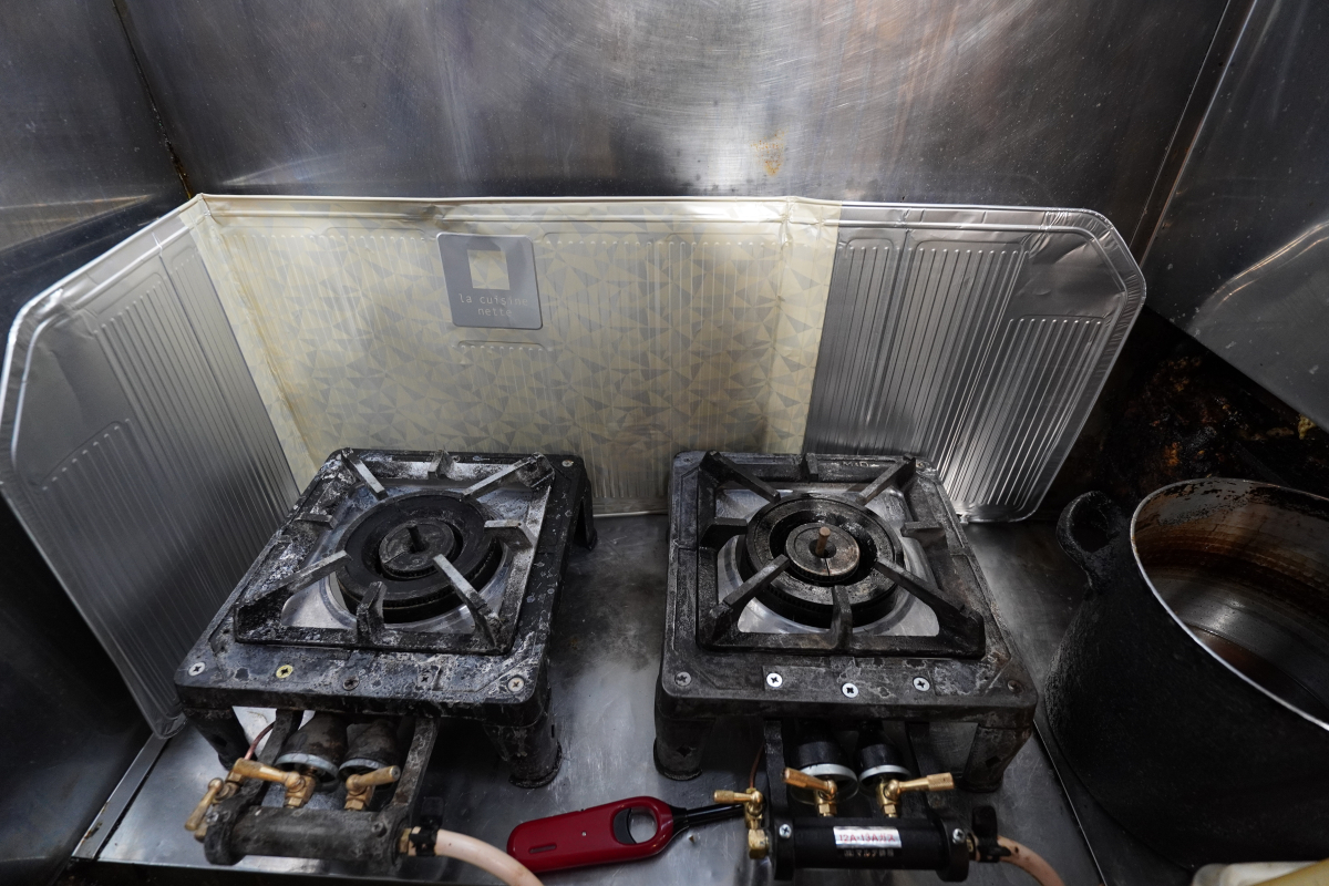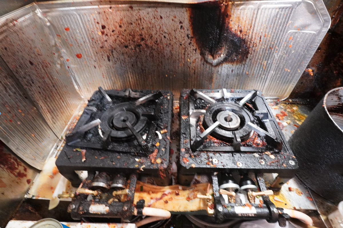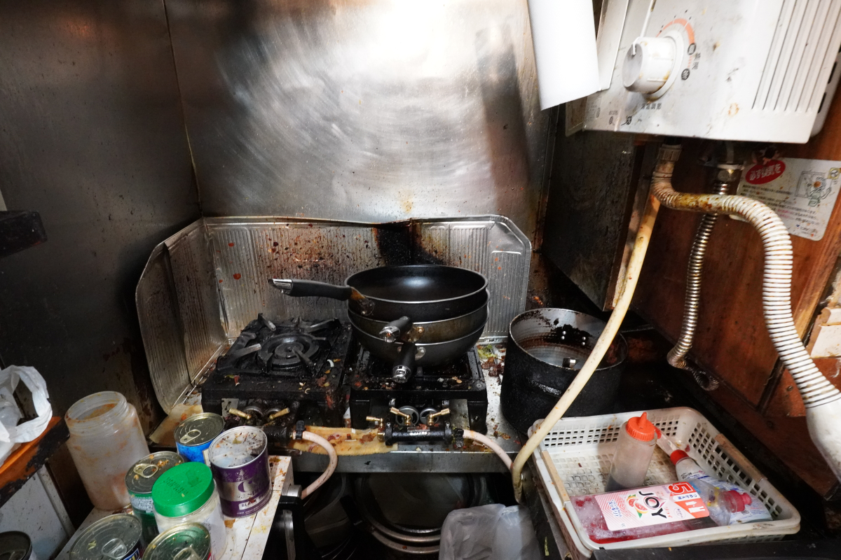 ※焦げや調味料の汚れが目立ちますね。