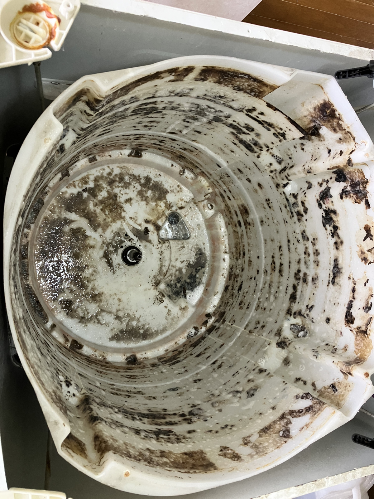 見た目はきれいでも、洗濯槽の裏側には洗剤カスやカビが溜まりやすい場所です。洗濯物の臭いが気になる場合、洗濯機内部の汚れが原因になっていることもあります!