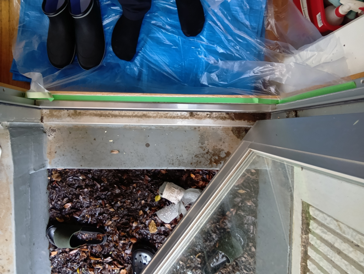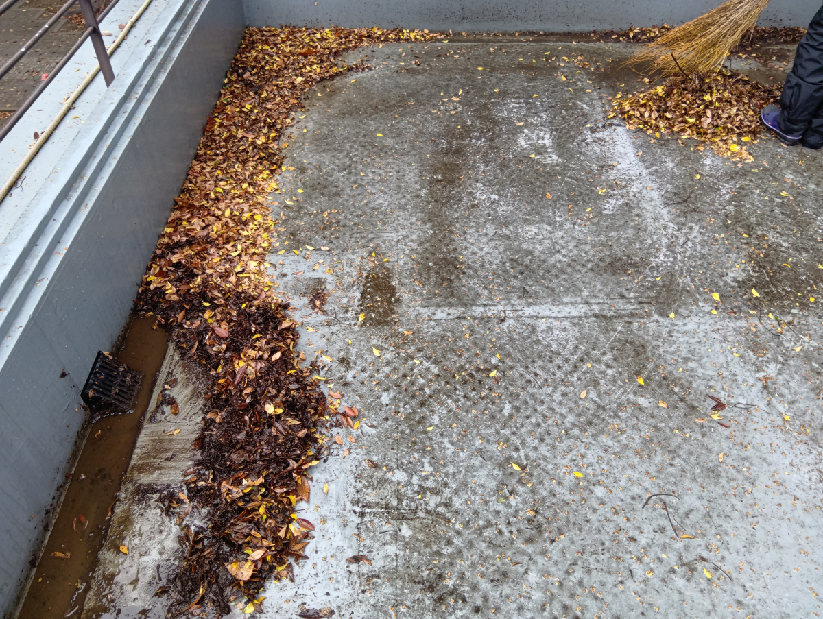屋外になりますので、どうしてもほこりや砂、雨水で汚れやすい場所です。近くに樹木もあったため落ち葉の堆積が非常に多かったです。