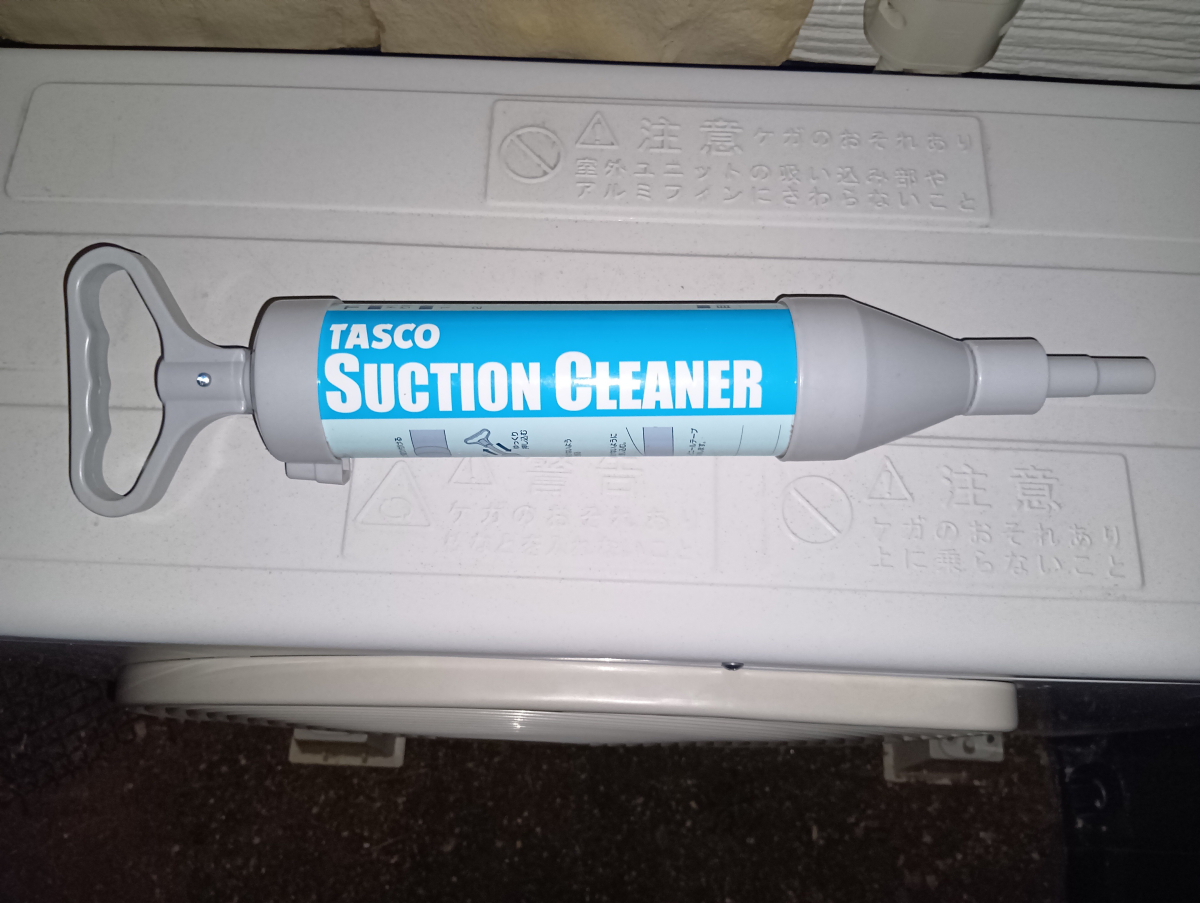 市販されている「ドレンホース用ポンプ(ドレンホースクリーナー)」を使う方法です。ホースの先端に差し込み、ハンドルを引いて真空圧で詰まりを吸い出します。物理的に汚れを除去できるため、最も手軽で効果的です。2,000~3,000円程で売っています。