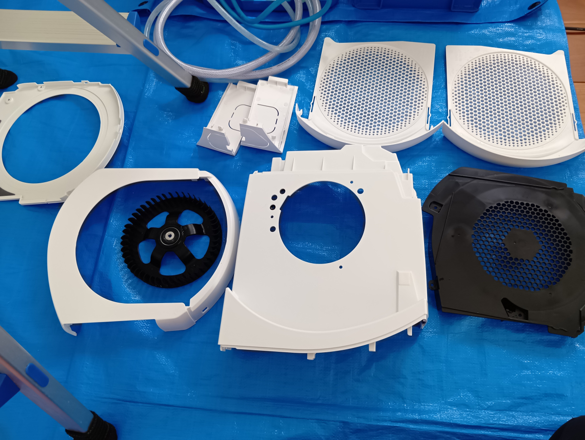 本機種は分解洗浄を断る業者さんもいるくらい通常のお掃除機能付きエアコンに比べて少し複雑で、サイドファンが付いている分時間もかかります。