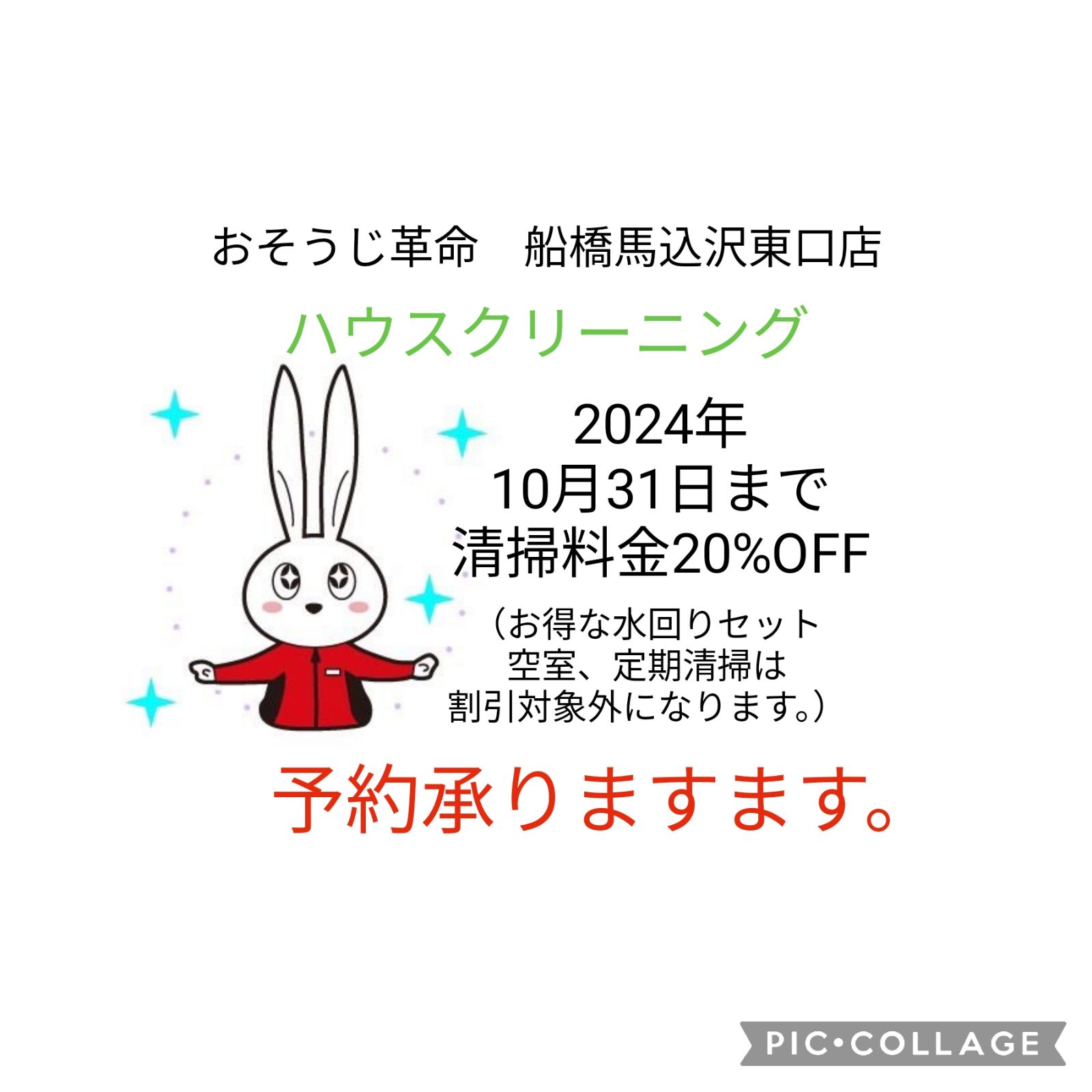 おそうじ革命 船橋馬込沢東口店 開業キャンペーン!全清掃メニュー20%OFF!
