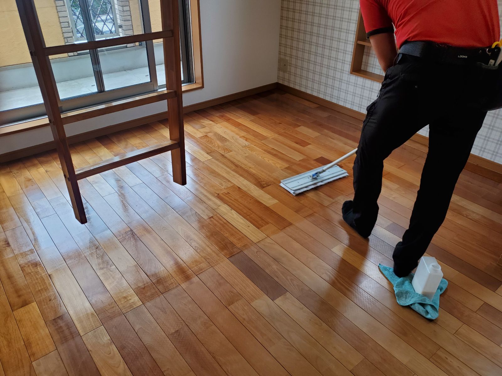 床のワックス塗り