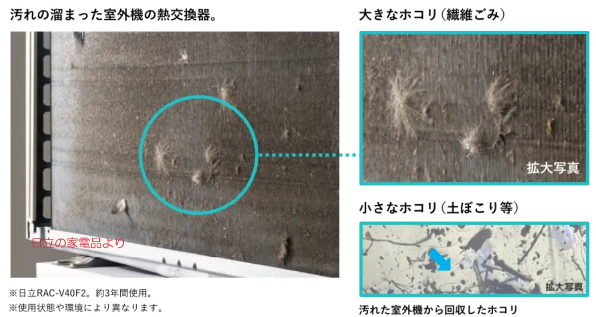 フィンにホコリがたまると放熱効果が下がります。柔らかいブラシで軽く掃除するだけでも効果的。ただし、奥まで汚れている場合は清掃業者へ依頼するのが安心です。※室外機は重いため、自分で動かすのは故障の原因になります。