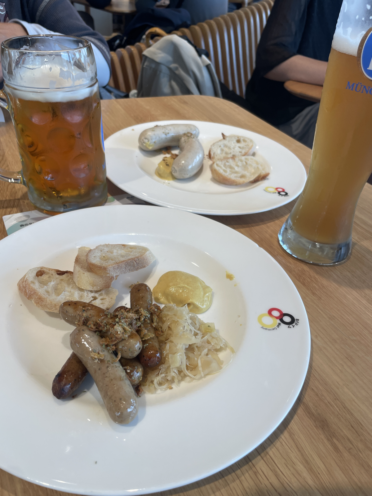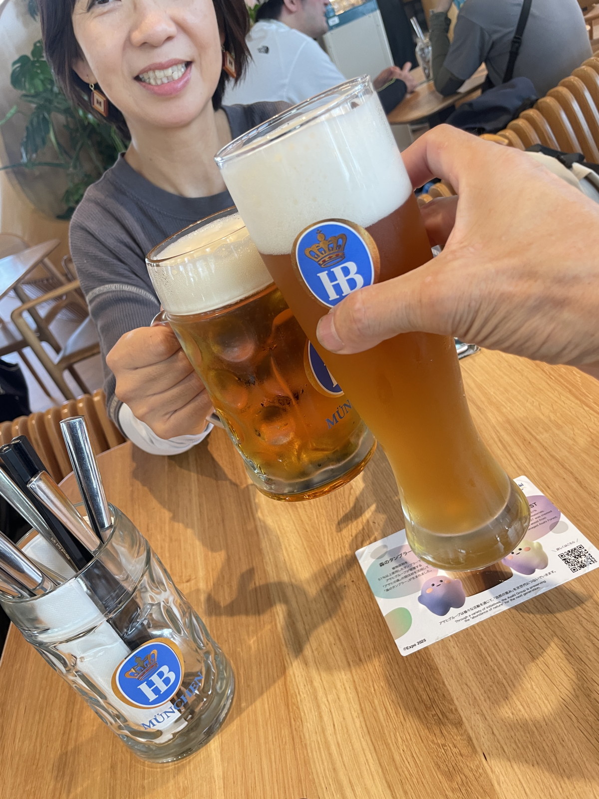 万博2日目は平日券で朝から入場しました。まず向かったのはドイツ館。朝からビールとソーセージを味わうなんて、まさに万博ならではの贅沢です。