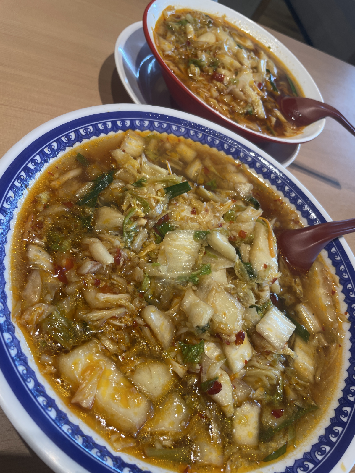 彩華ラーメンは「天理ラーメン」と呼ばれる奈良発祥のラーメンの代表格。たっぷりの白菜を中心に、野菜とにんにくを効かせたピリ辛スープが特徴です。ルーツは1970年代、天理市の屋台から始まり、今では奈良を代表するソウルフードになっています。