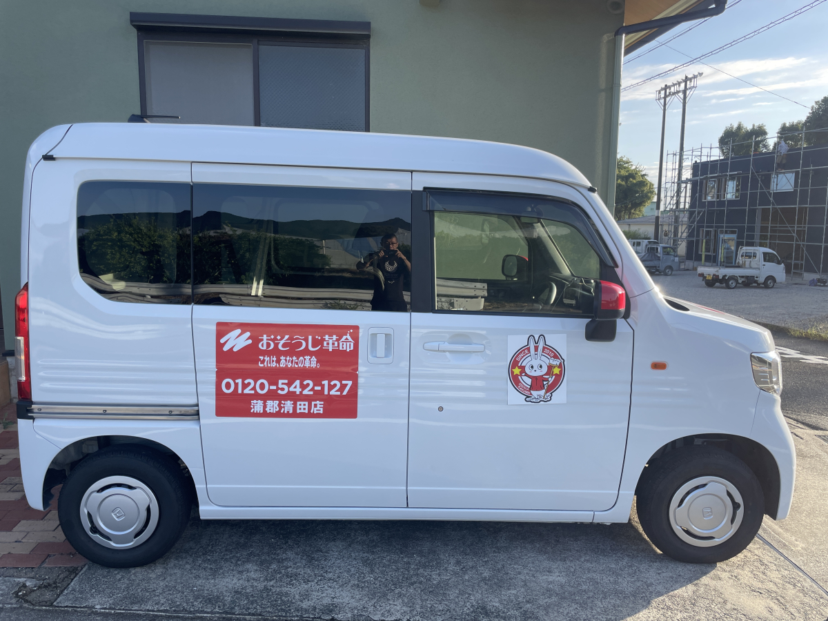 おそうじ革命のテーマカラーに合わせた赤色で、営業車らしさが和らぎ、かわいらしい印象に変身しました。さらに、おそうじ革命のステッカーともよくマッチして、見た目もグッドです✨