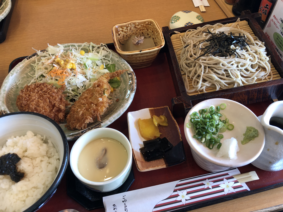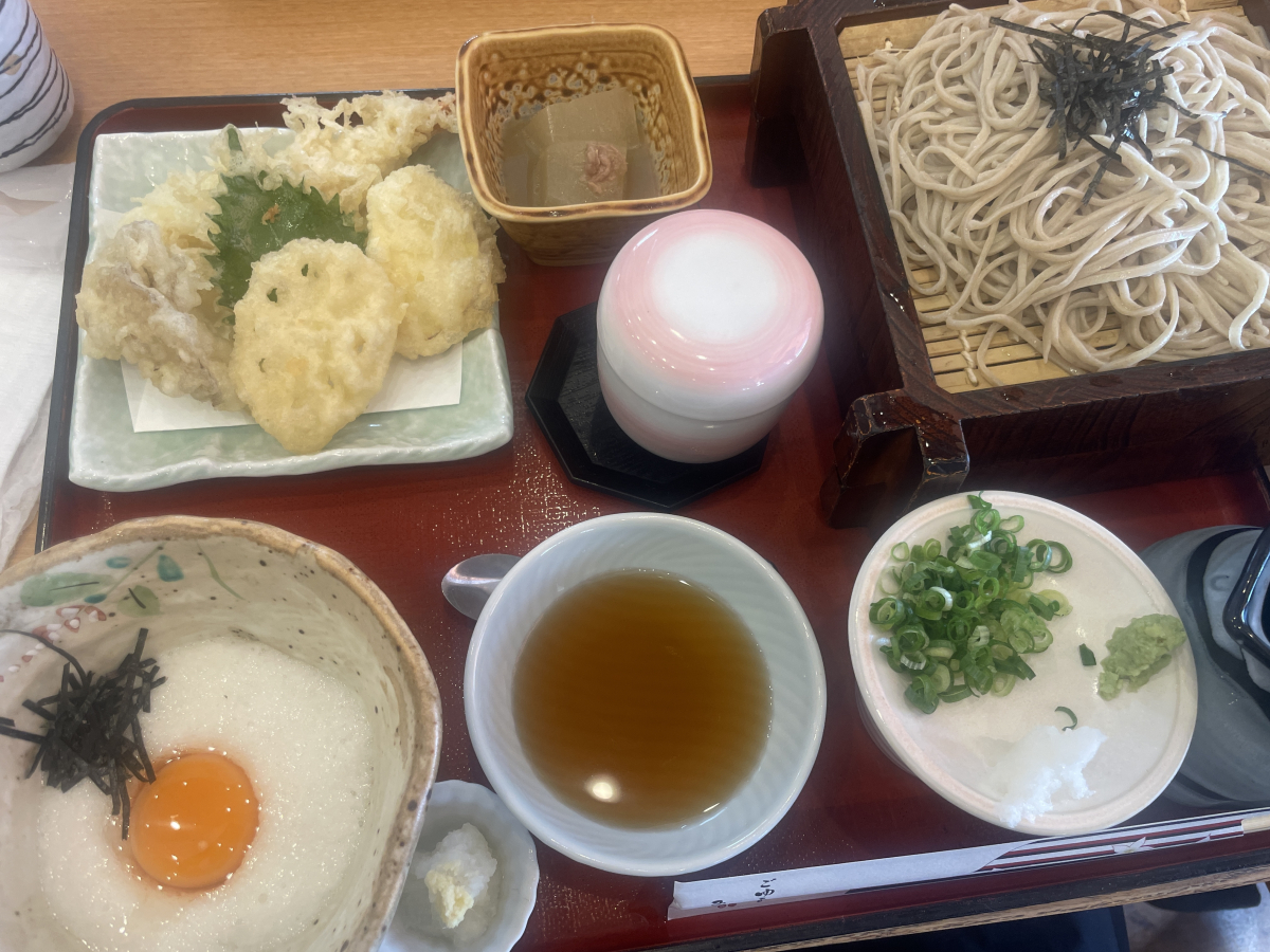 私は「天ぷらととろろのせいろランチ」、妻は「日替わりランチ」を注文。そばの香りと喉ごしがとてもよく、人気の理由がよくわかりました。平日の昼間にも関わらず順番待ちになるほどの賑わいで、納得の美味しさです。