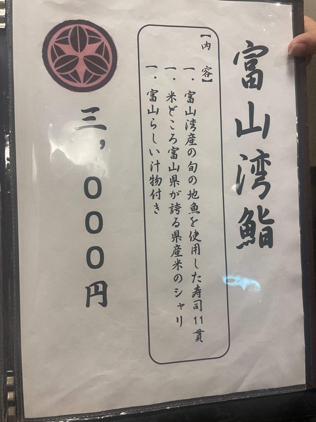 平日の夜で落ち着いた雰囲気の中、夫婦で富山湾鮨を注文しました。