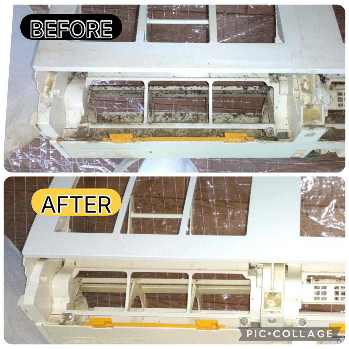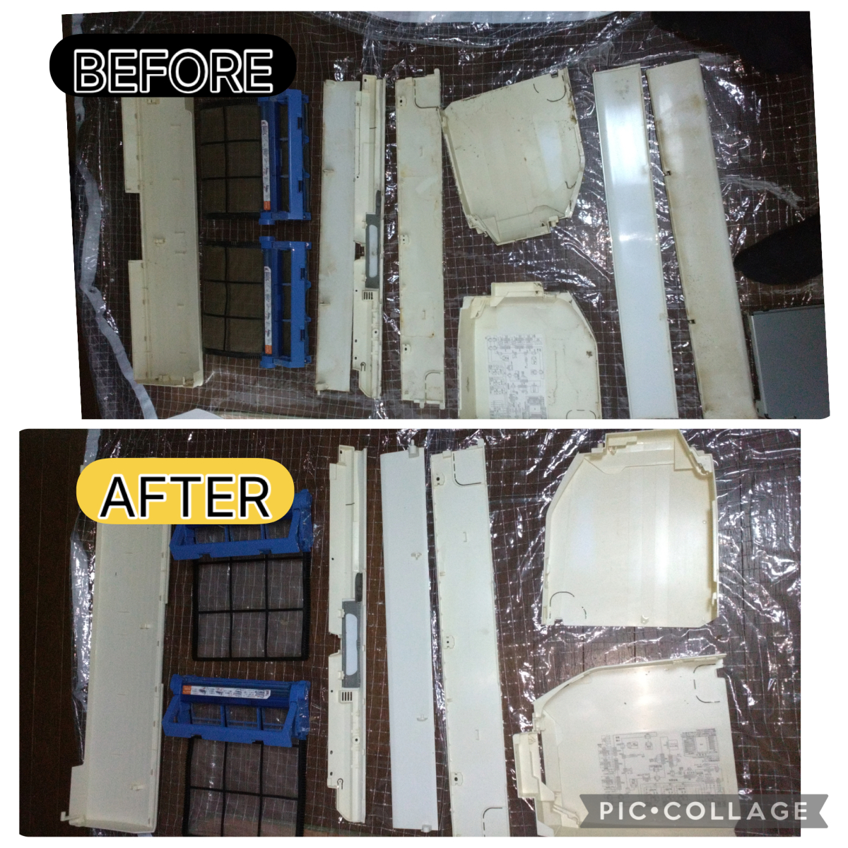 かなりのホコリやカビ汚れが強く、エアコン本体やパーツの隅々まで汚れが見られる状態でした。