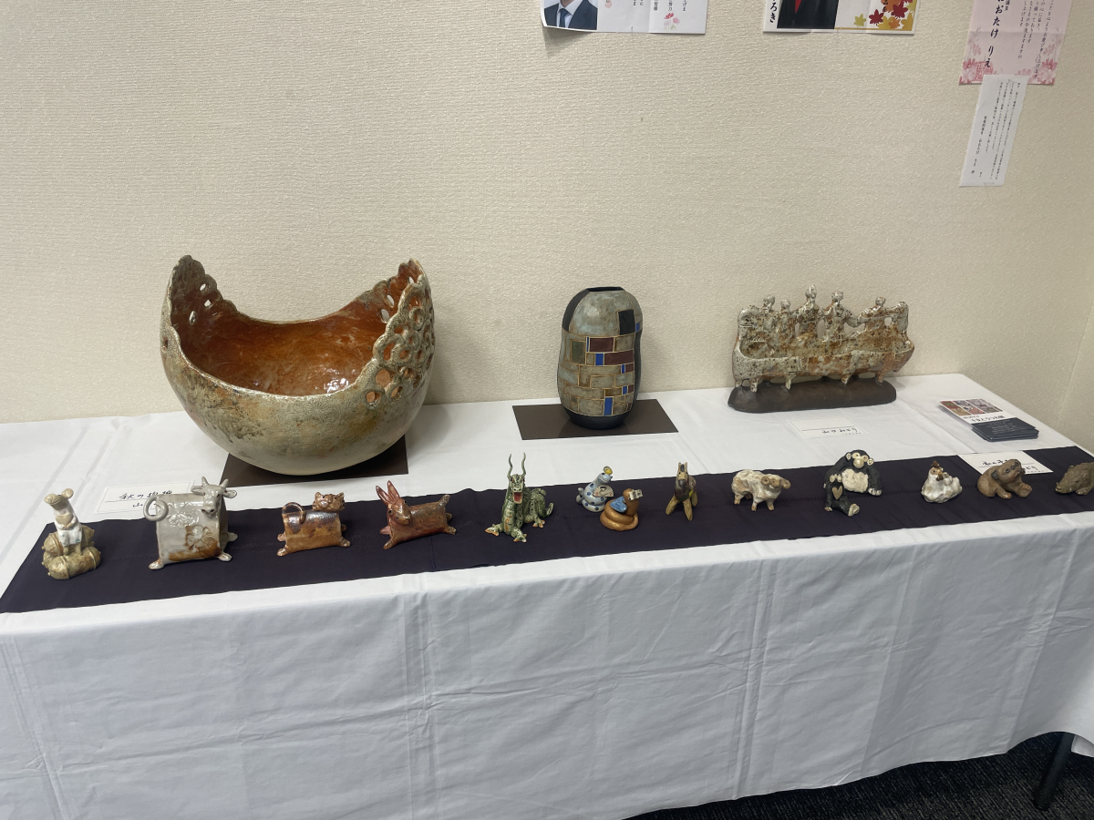 会場では、お客様が私たちを見つけて喜んでくださり、一点ずつ丁寧に作品を案内してくれました。妻が生け花展で使う花器の話をすると、「貸してあげるよ」と温かいお言葉までいただき、素敵な交流となりました。