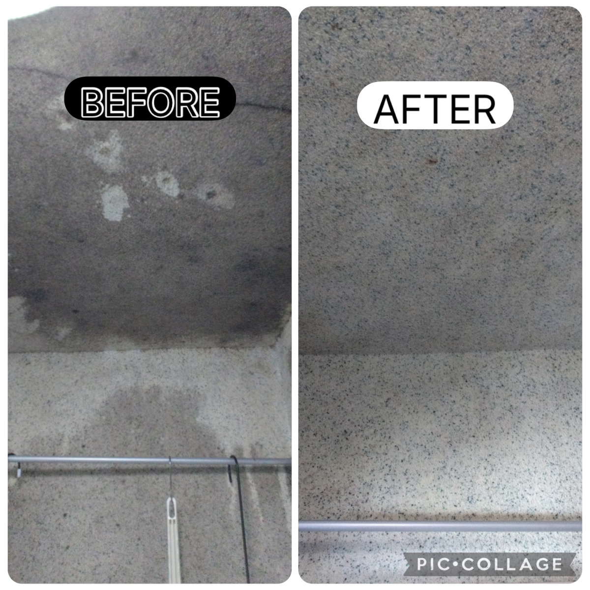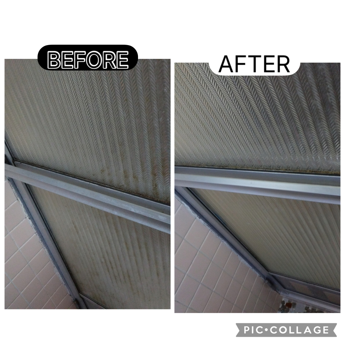 普段のユニットバスとは違い、勝手が異なる部分もありましたが、状況に合わせて薬剤を選定。カビにしっかり効く薬剤を使用し、壁・天井を中心に丁寧に洗浄していきました。