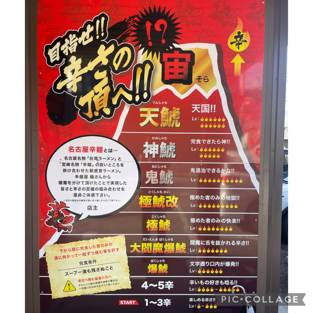 鯱輪さんの特徴は、辛さにランクが設定されており、下のレベルから順番に挑戦していくスタイルになっている点です。