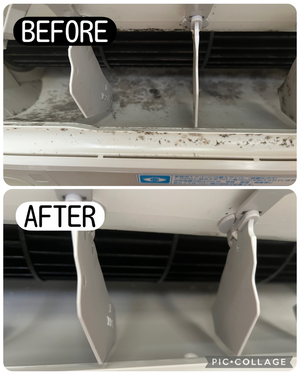 吹き出し口にはカビ汚れが見られ、内部にもホコリや汚れが少しずつ溜まっている状態でした。