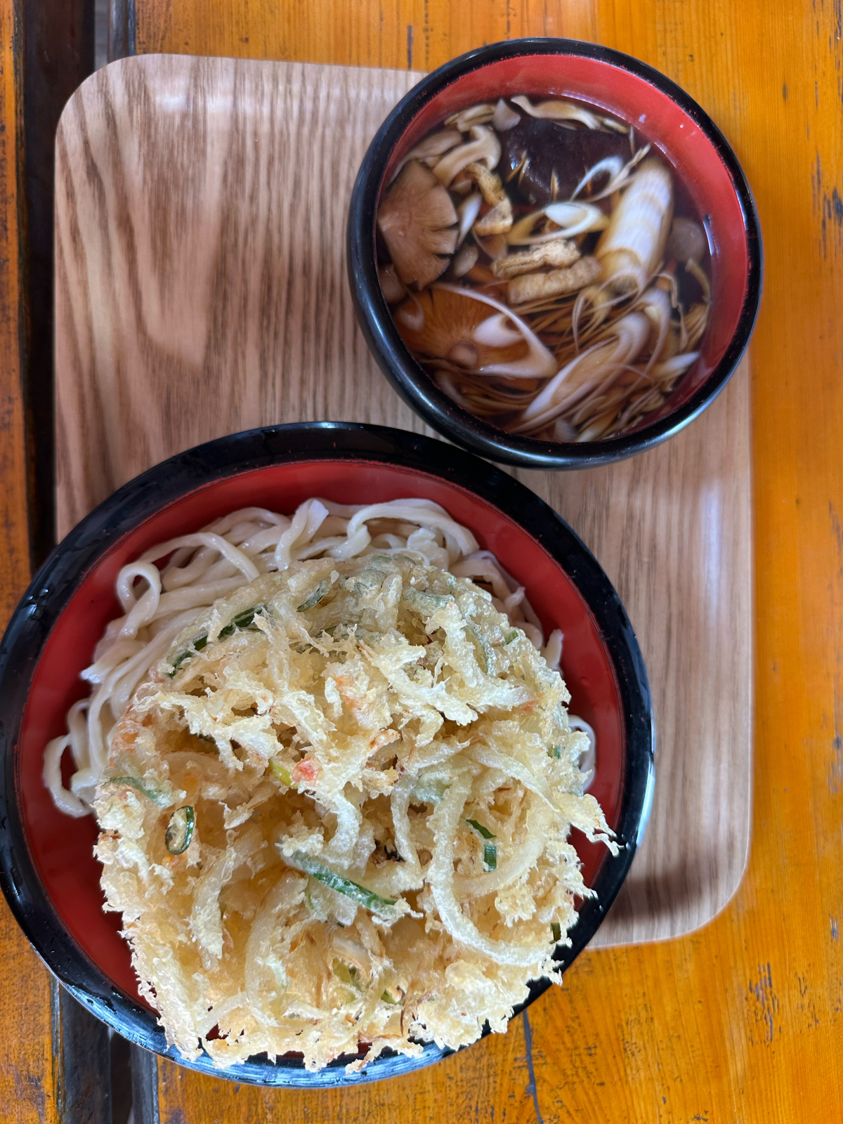 おそうじ革命 群馬太田下田島町店の鈴木宏隆です。今日は貴重な休日ということで、少し足を延ばして埼玉県熊谷市へ。前から気になっていたうどん屋さん【さくら屋】さんに立ち寄ってみました。注文したのは「お肉ときのこ汁のつけうどん」。しっかりとコシのある手打ちうどんに、旨味の詰まった肉と香り豊かなきのこがたっぷり入ったつけ汁が絶品。口に運ぶたびに出汁の奥深さが広がり、箸が止まりませんでした。かき揚げの大きさがすごく大きく食べ応えもありました。今日は暖かったのでテラス席で、ゆったりとした時間を楽しめた休日のひととき。リフレッシュ完了、また明日からがんばれそうです。