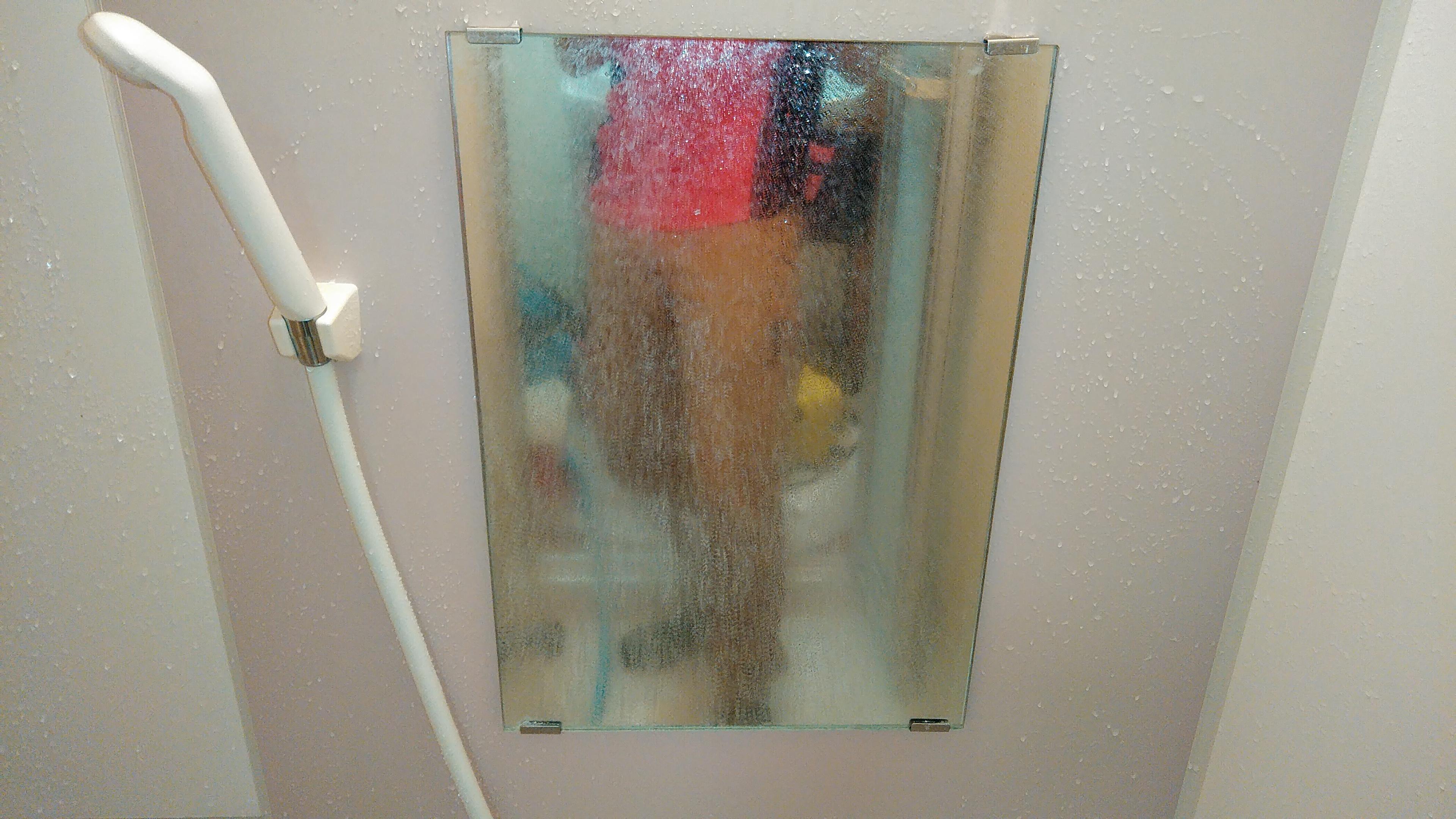 部品の洗浄に浴室をお借りしたので浴室の鏡を磨かせて頂きました(∩´∀`)∩