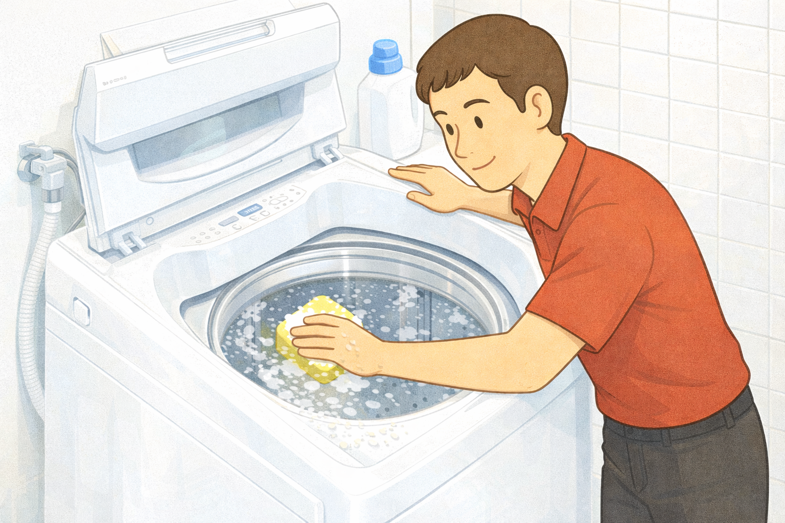 ⑤水垢が柔らかくなったことを確認し、スポンジなどでやさしくこすって水垢を落とす