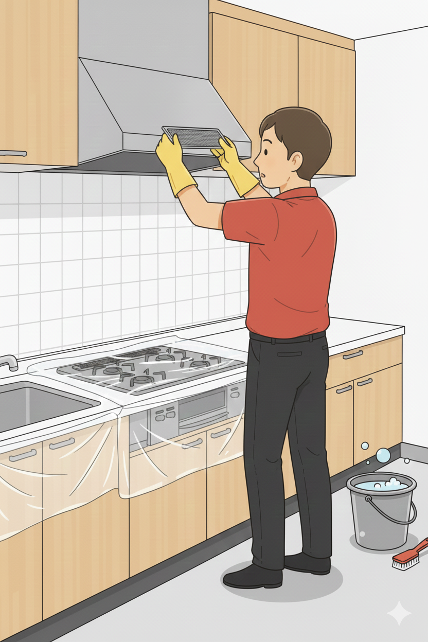 - 分解清掃、油汚れ除去、フィルター清掃を含む