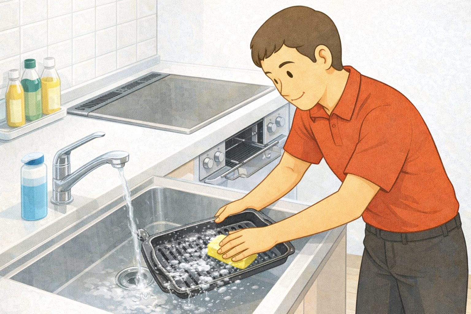 水が溜まりやすいドレンパン内部にもカビやヌメリが蓄積していましたが、専用洗剤とブラシでピカピカに。