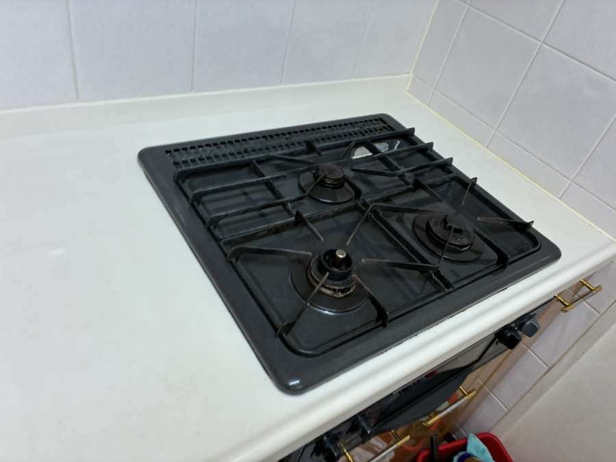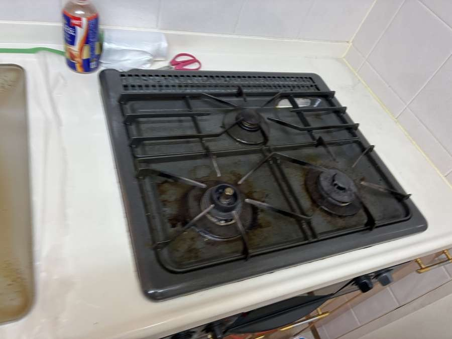 ② 油汚れがつきやすいコンロまわりを重点的に清掃し、ベタつきをしっかり除去しました。