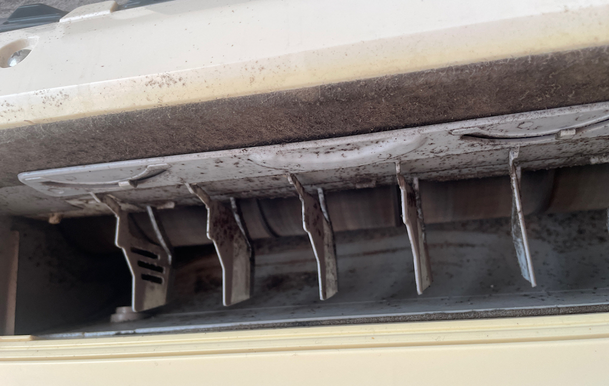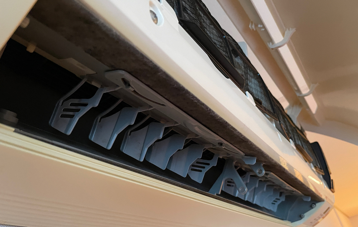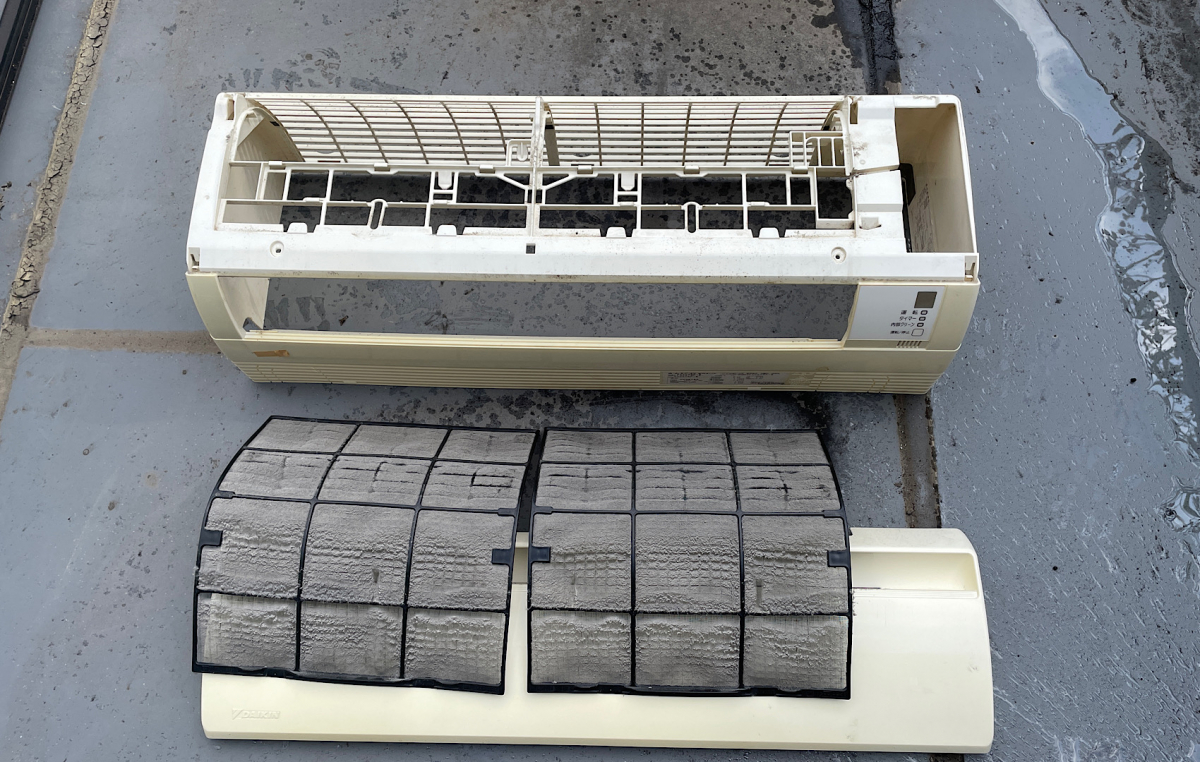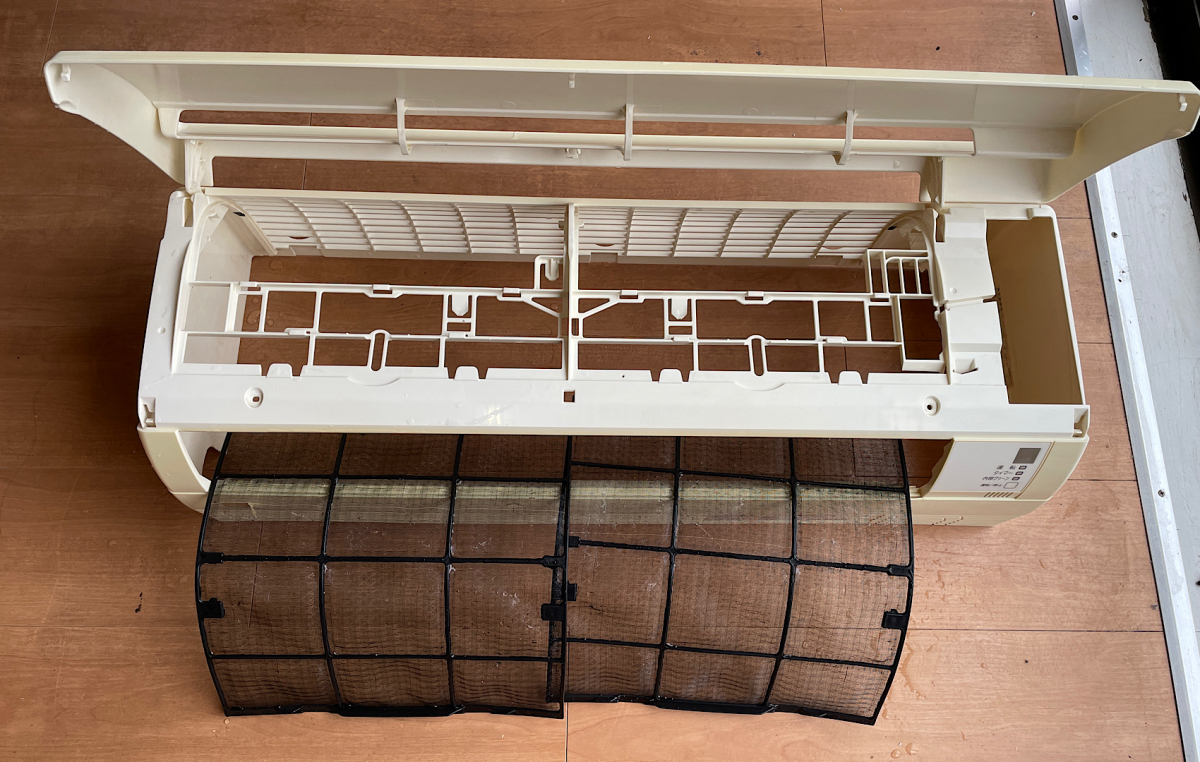 カビだらけ。確かにエアコンの近くからカビ臭がわかるぐらいでした。