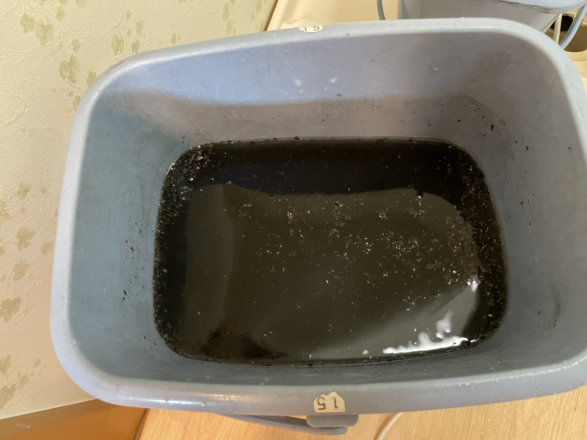 洗浄すると真っ黒い汚水が大量にでました。