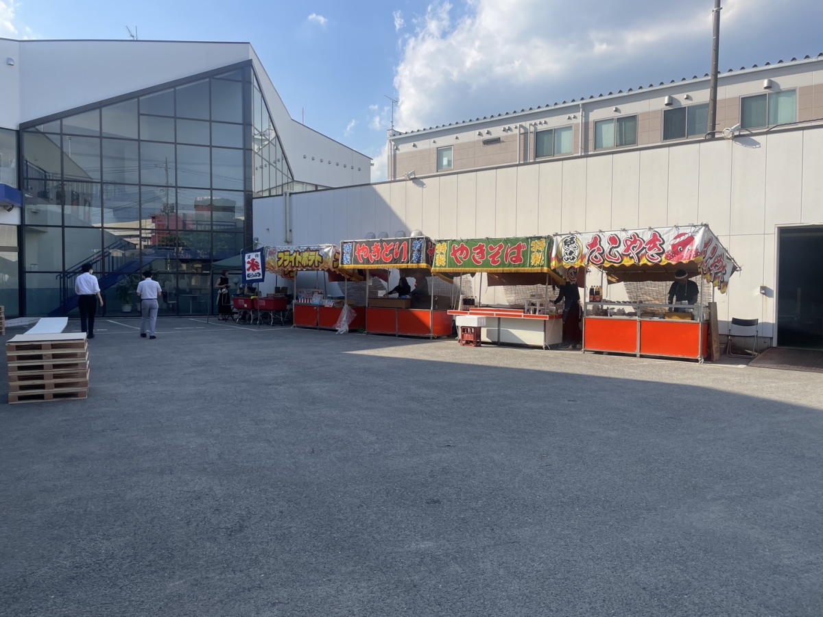 お客様や従業員の方々も笑顔で楽しんでおられ、屋台の前には小さな列ができ、和やかな雰囲気。