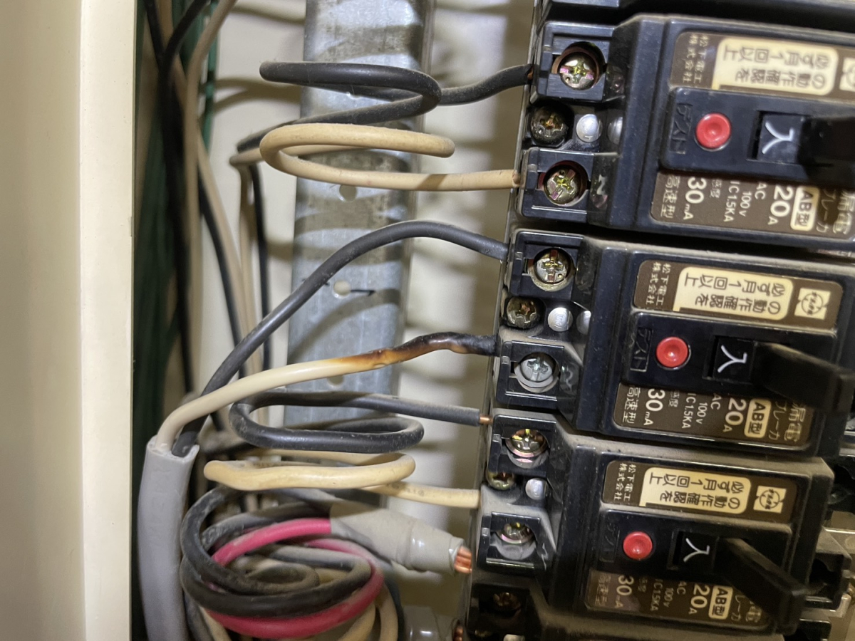 至急、配線のやり直しとブレーカーも合わせて交換しました。