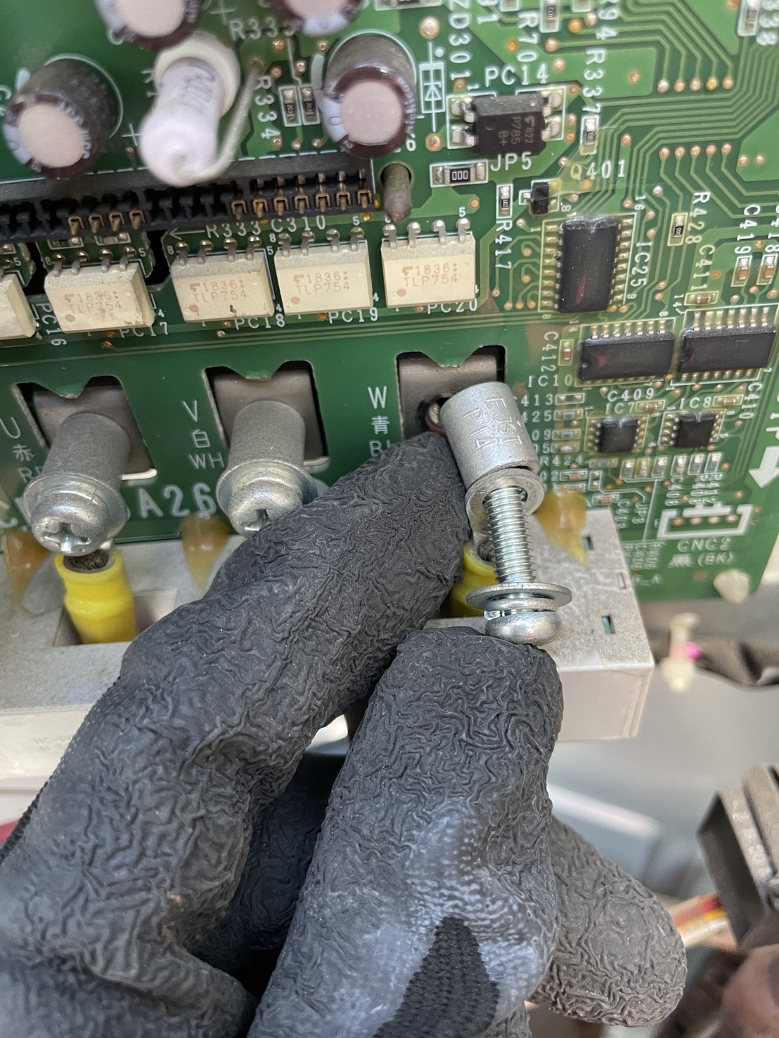 その後、新しい純正の制御基板を取り付け、各コネクタの接続を一つひとつ確認。