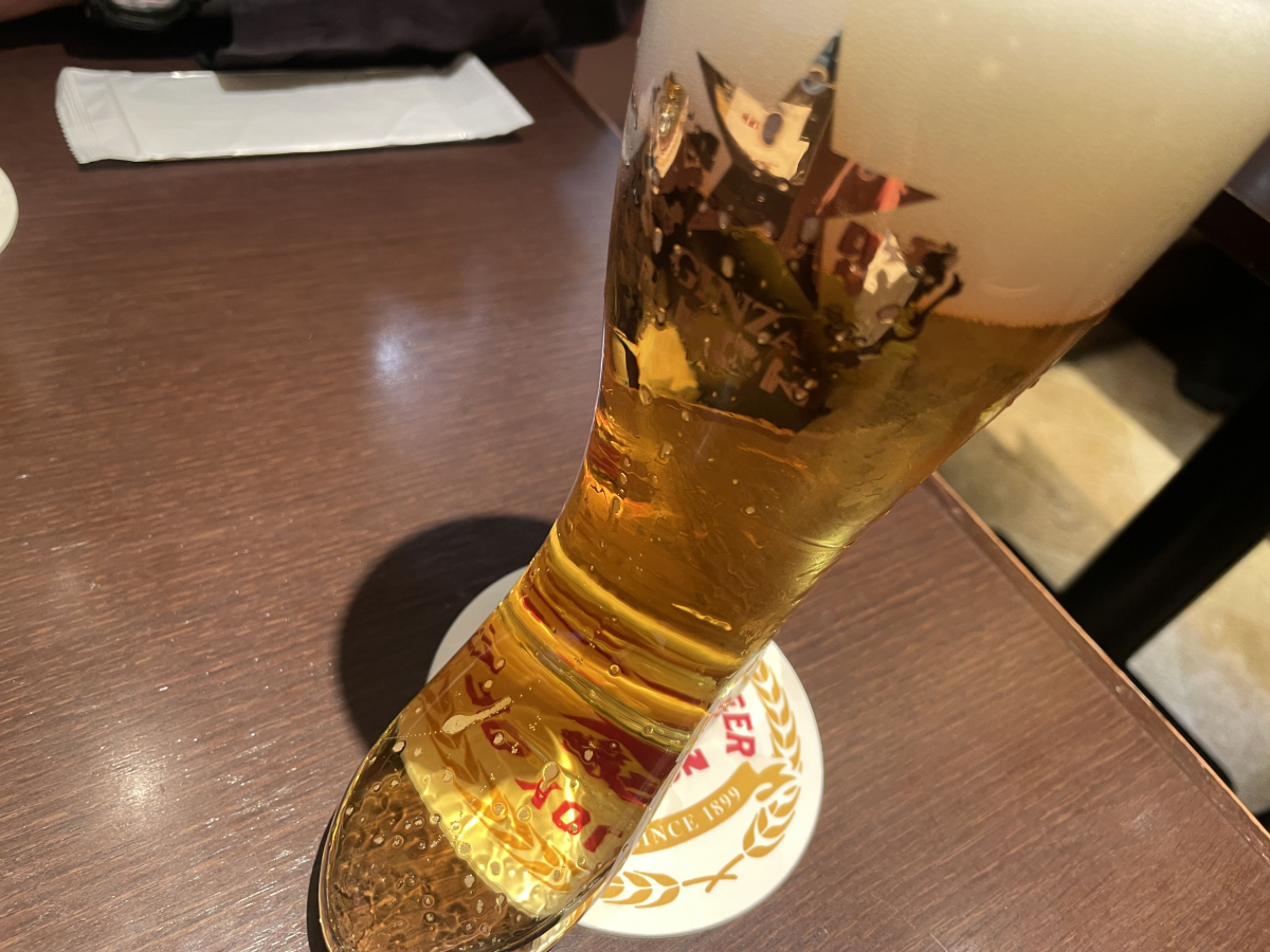 グラスの形に少し戸惑いながらも、銀座ライオンの生ビールだと感じる味わいでした。