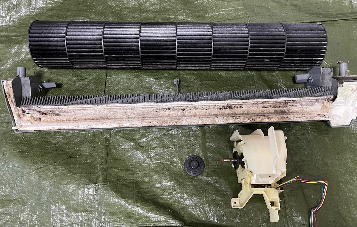 そこで今回は、外装パネル・フィルター・ドレンパン・送風ファンまで取り外す完全分解洗浄を実施しました。