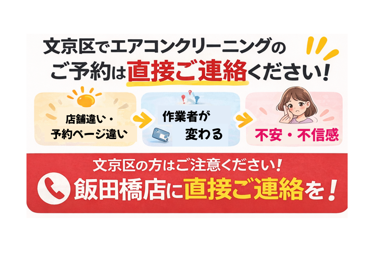 文京区周辺のお客様へエアコンクリーニングのご予約に関する注意喚起をお伝えさせていただきます。