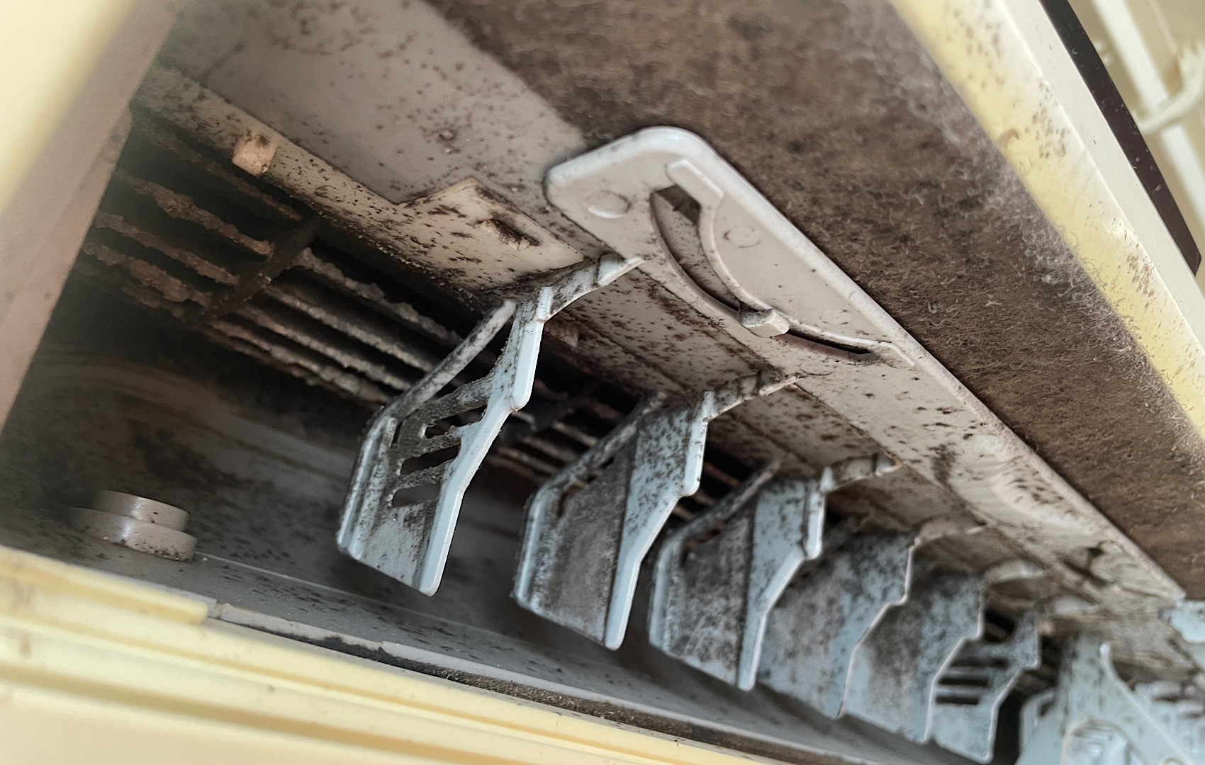 新宿区市谷【エアコンクリーニング】日立製品_白くまくん 正面のカビ汚れは要注意!