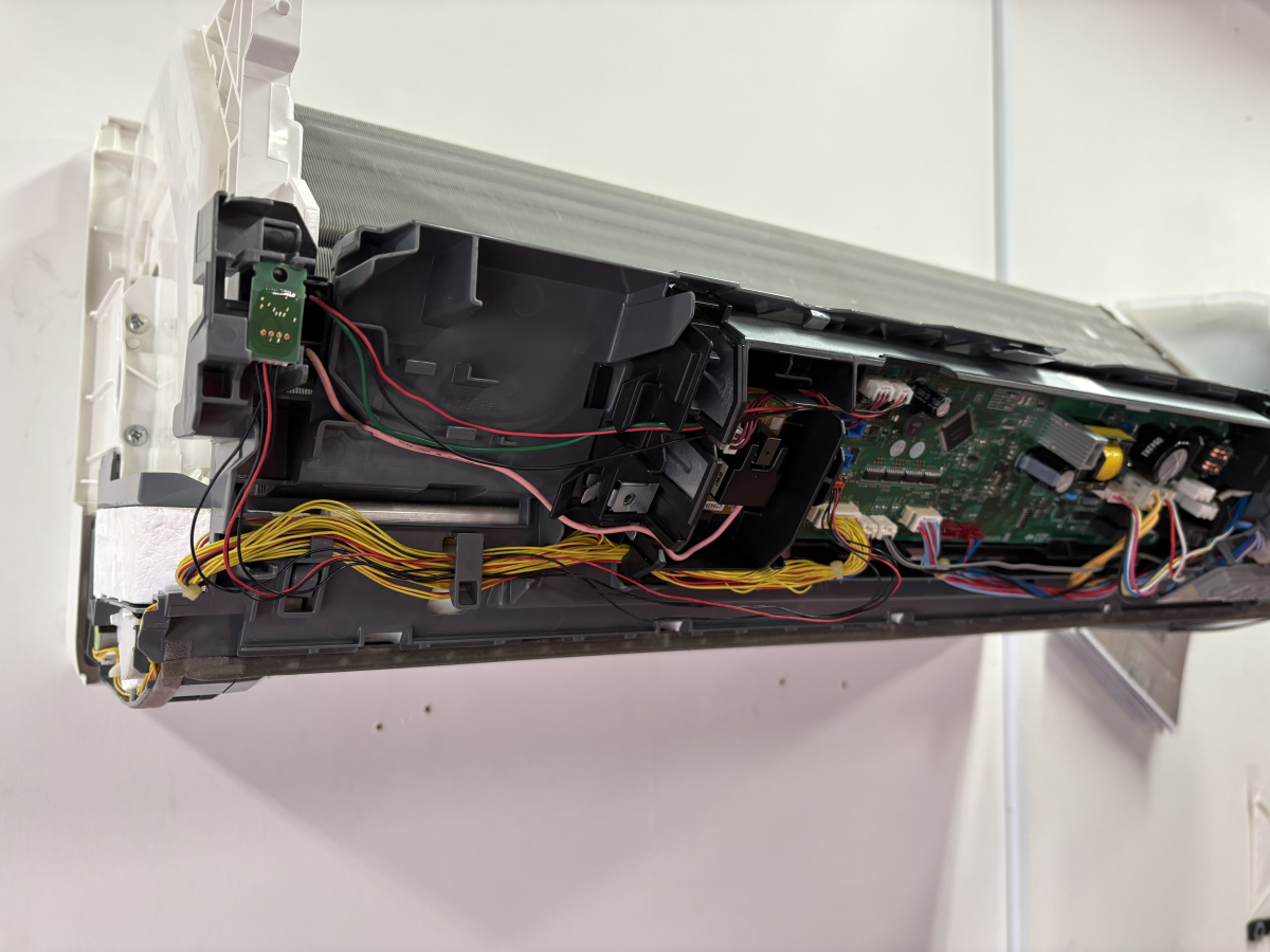 一般的なエアコンと違い、おそうじロボット部分を取り外すためには、基盤や配線を多く触る必要があり、構造もとても複雑です????
