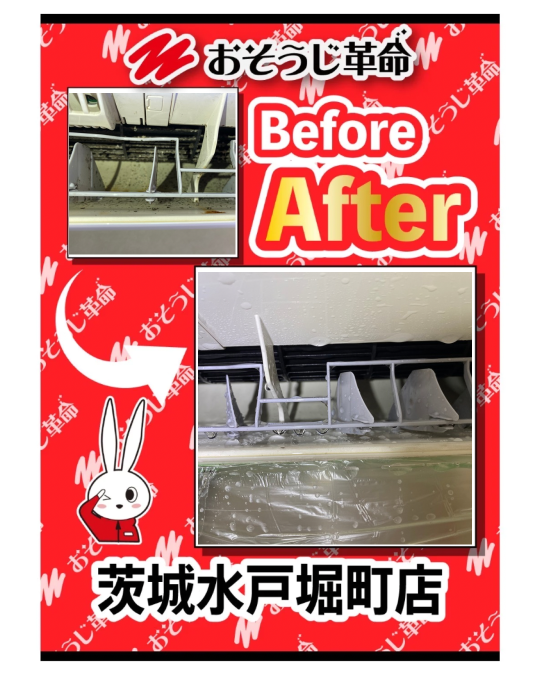 本日は水戸市にてエアコン(お掃除機能付き)と室外機の清掃を行いました!!!
