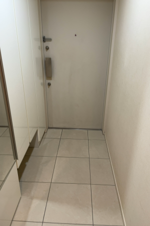 ・玄関:水洗いで扉及び玄関タイルを清掃します。特に靴箱の中や下に汚れが残る傾向にあります。